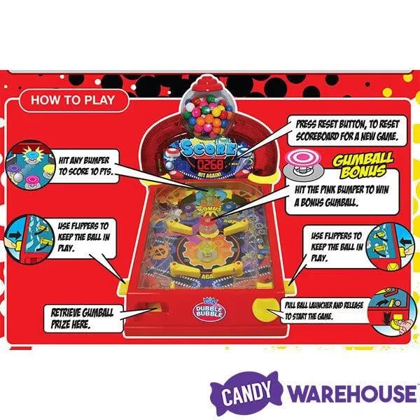 Play pinball with gumballs to add color and fun to the excitement of the classic pinball machine action of flippers, bells, and lights. After a gumball exits the game relax by chewing the delicious gum while you play on with a different piece.