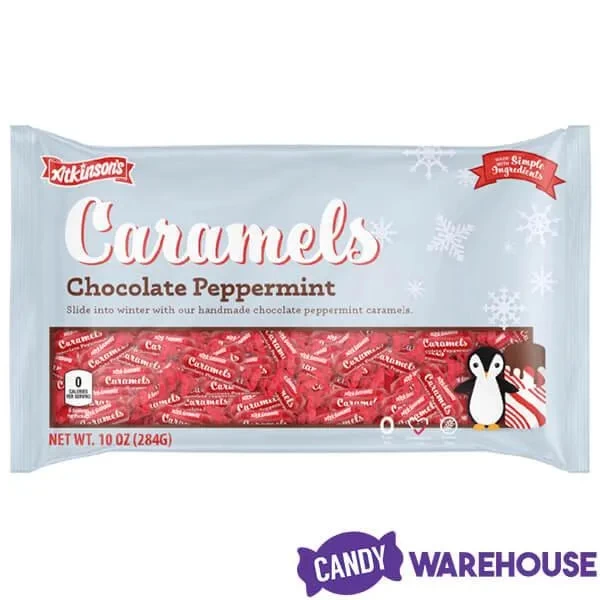 In their neverending quest to thrill caramel lovers, those clever confectioners in Lufkin, Texas have come up with Atkinson’s chocolate peppermint caramels candy. It’s the same handcrafted, soft caramel candy you expect from the Atkinson Candy Company, but these pieces of peppermint chocolate heaven contain crushed Mint Twists for little bites of satisfying crunch as you chew. A 10-ounce bag of individually wrapped chocolate peppermint caramels from Candy Warehouse lets you stuff the family’s stockings in the jolliest way. Because Atkinson crafts these kosher and gluten-free caramels using simple, clean ingredients and nothing artificial, they’re ideal for sharing at school and work. Shop Candy Warehouse for the full line of Atkinson’s Candy, including other seasonally scrumptious offerings like Atkinson’s Pumpkin Spice Caramels and Atkinson’s Gingerbread Caramels.