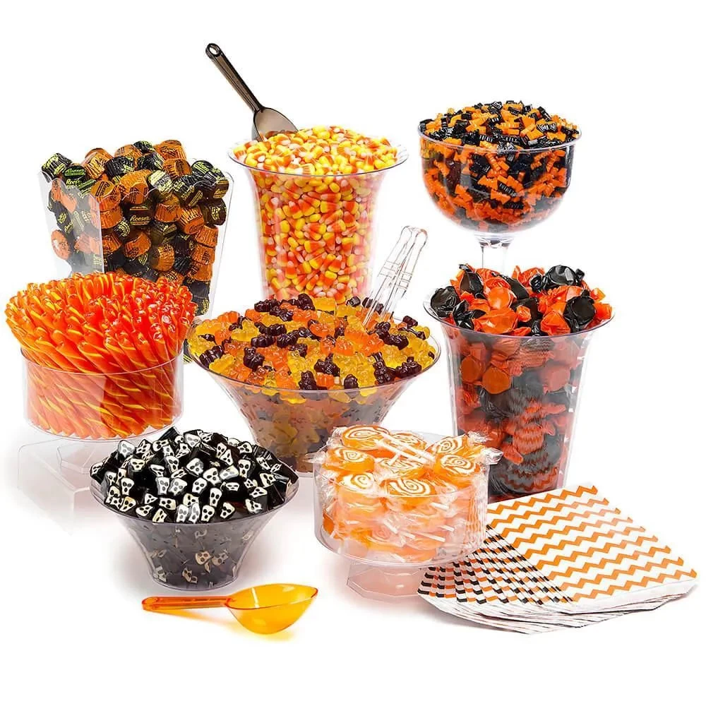 Halloween is full of mystery, from the things that go bump in the night to the things that cover your dessert table at the annual Halloween party. Fortunately, you’ve decided to lay one of those mysteries to rest (in peace) with our Designer Halloween Candy Buffet Kit. It comes with everything you need to thrill coworkers, family, and friends including the tongs, party bags, containers, and sweets in spooky shades of orange and black. The scariest part? How easy it is to set up and serve to all 50 of your ghastly, ghostly guests. One click and you’re done!