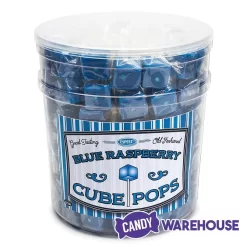 Bring a bold retro vibe to your next private bash or workplace function with Espeez blue raspberry cube pops. Handcrafted with love the old-fashioned way, the brilliant blue cube lollipops in this 100-piece tub add vintage flair to your decorations while delivering ripe and juicy raspberry flavor. Invite this blue raspberry lollipop candy to baby and bridal showers, weddings, school reunions, and Fourth of July parties. Individually wrapped for easy dispensing, these vibrantly colored blue raspberry cube pops are perfect for Hanukkah celebrations, kids’ birthday parties and trick-or-treaters too. Buying square suckers and other blue candy in bulk from Candy Warehouse saves you time and money. You’re welcome!