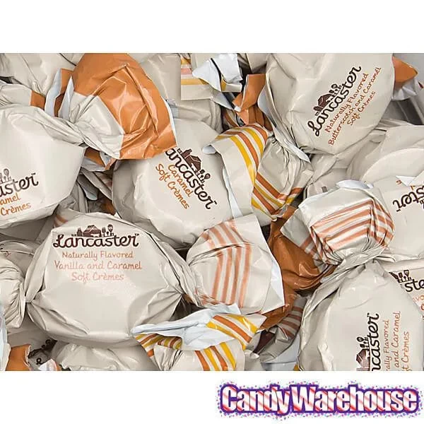 Gift tin contains 2.5 pounds of Caramel, Vanilla, and Butterscotch Lancaster Soft Cremes… that’s about 160 pieces.