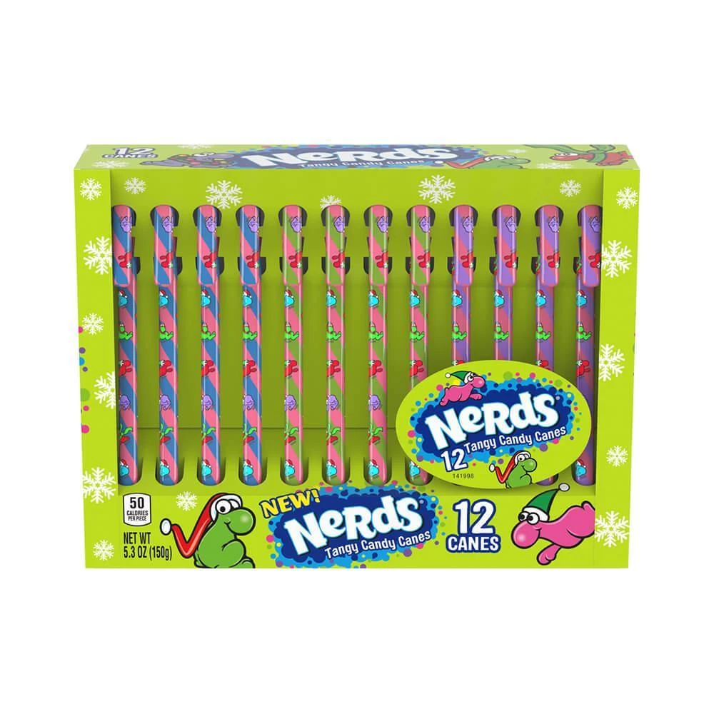 Flavors include: Watermelon and Cherry, Strawberry and Grape, and Blue Raspberry and Tropical Punch. Unique, Holiday Nerds character images on every candy cane wrap!