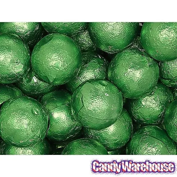 Bag contains 5 pounds of Kiwi Green Foiled Caramel Filled Chocolate Candy Balls.