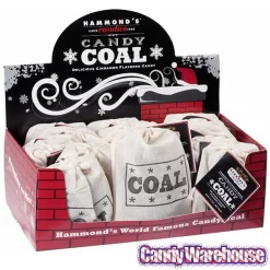 A little sack of candy coal! This delicious cinnamon flavored hard candy coal is a sweet version of century’s old Christmas folklore tradition where children placed wooden shoes by their beds or hung stockings by their chimneys on Christmas Eve anticipating a visit from St. Nicholas. The good children would awaken to find cakes, treats, and candy canes. But if the children were naughty during the year they awoke to lumps of coal. Carry on this tradition by giving Sack of Coal Candy to the naughty people in your life. Who knows, it may encourage them to be “good for goodness sake!” You can always tell who has been naughty Christmas morning, since this candy will temporarily turn your mouth blue!